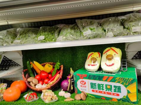 葉菜、豆類、菇類用保鮮膜包裝好均陳列島柜在島柜里,蔬菜里的水分不易流失,關(guān)鍵是這些蔬菜看似都是精裝,但它的價格都是一樣實惠的哦,性價比超高!