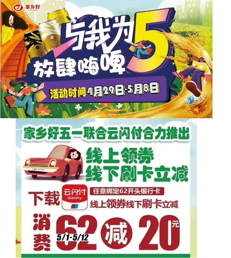 清水河店 I 與我為5 放肆嗨皮!家鄉(xiāng)好超市攜手云閃付五一福利來襲??!